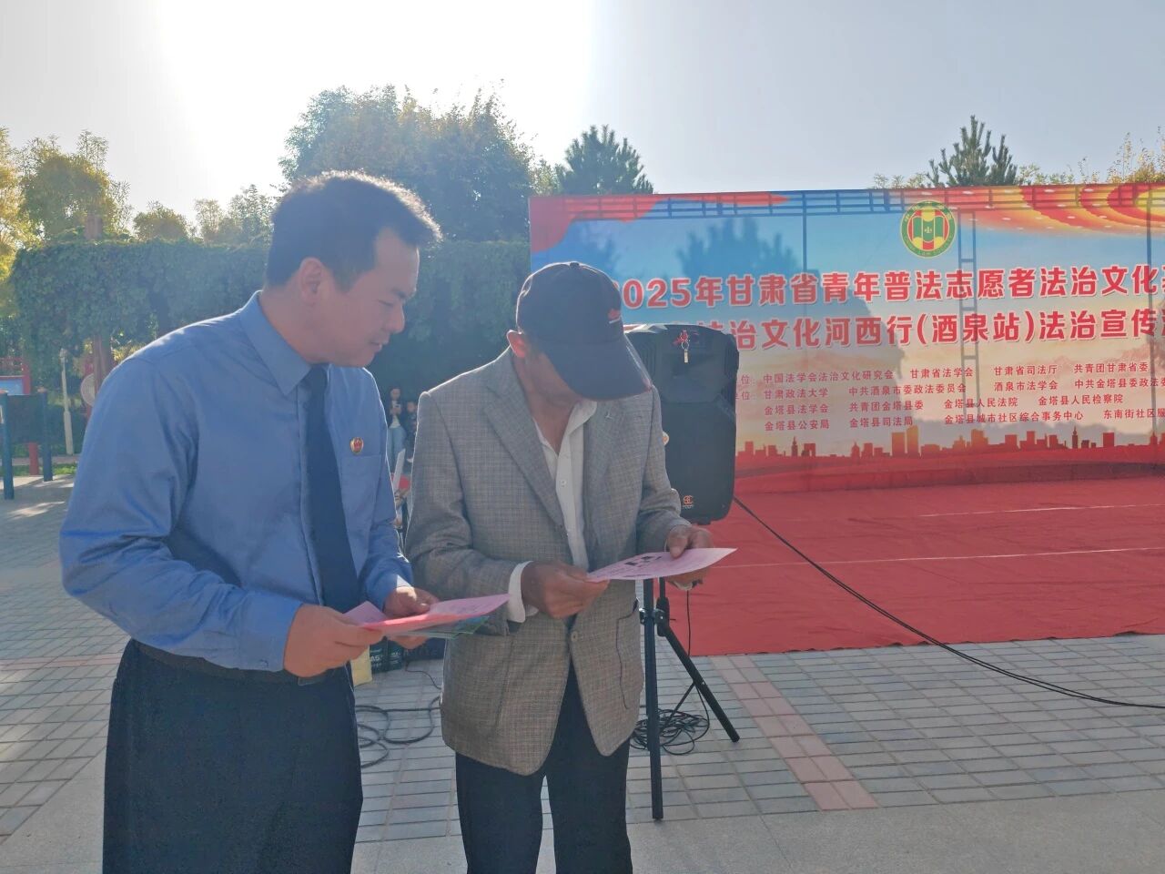 近日,2025年甘肃省青年志愿者法治文化基层行暨“红色法治文化河西行”法治宣讲活动在金塔县法治文化广场举行。金塔县人民检察院组织干警积极参与此次法治宣讲活动。