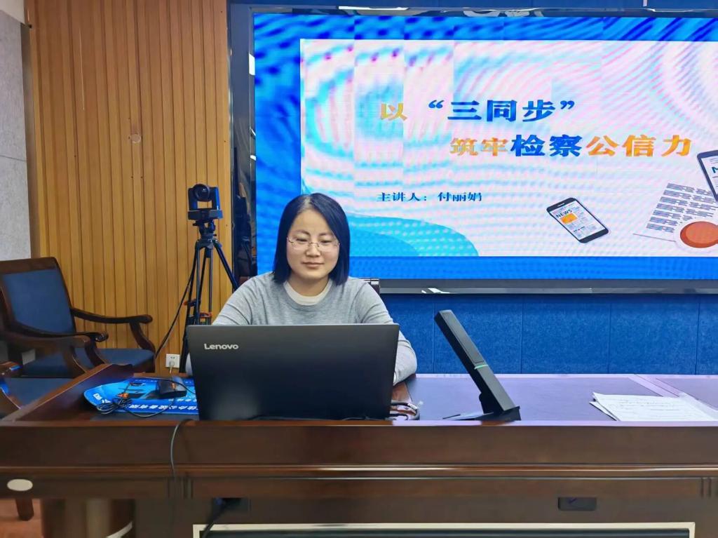 付丽娟同志围绕《以“三同步”筑牢检察公信力》主题,深入浅出地讲解了如何在检察工作中贯彻落实“三同步”原则。她从筑牢意识形态阵地、厘清职能定位入手,结合典型案例,生动阐释了践行“三同步”的具体方法,并就提升媒介素养、守好法治阵地等方面分享了心得体会,为干警在新形势下做好检察宣传工作提供了新思路。